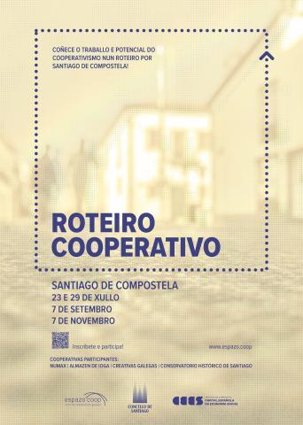 O Roteiro Cooperativo trátase dunha ruta guiada na que as persoas participantes poderán coñecer de preto catro cooperativas da cidade de sectores moi diferentes, precisamente nun ano que coincide coa designación de Santiago de Compostela como capital española da economía social. O movemento cooperativo ten unha gran importancia en Galicia e medra cada ano, tanto en número de cooperativas como en persoas traballadoras. De feito, na actualidade, en Santiago de Compostela hai preto de 70 cooperativas de distintos sectores como as industrias culturais, as xestorías e asesorías de empresas, artes gráficas, ensino, consultoras ambientais, artesanía, telecomunicaciós ou servizos sociais.
